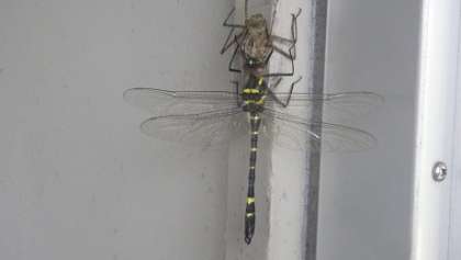 ムカシトンボ。山地に生息し、1億5千万年前に生息していたトンボの化石に近い形態をしているところから「生きた化石」と言われている貴重種で、山間部の水のきれいな渓流に生息するそうです。