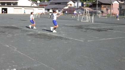部活再開二日目。まだ感覚が戻っていないところもあるけれど、気合いでカバーしていくぞ〜!(テニス部)