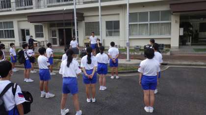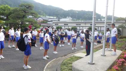 本日で3週間の実習が終わる教育実習生に全校生徒からお礼の言葉を贈りました。それを受けて実習生が生徒に向けて言葉を伝えました。ここで学んだことをこれからの人生に生かしてくれることを教職員、生徒一同願っています。