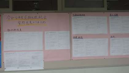先日行われた生徒総会で出された質問や意見のまとめが生徒会室前の壁に掲示してあります。生徒会執行部を中心に自分たちの学校をよりよくしていこうと主体的に動いている稲中生。生徒数は豊田市一少ない中学校ですが、大規模の学校に負けない「前向き」な気持ちでどんどん改革していってほしいと思います。頑張れ!稲中生!!