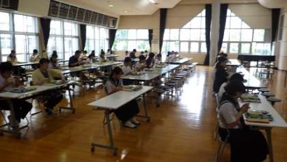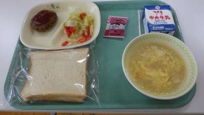 本日の献立は「スライスパン、大豆チョコクリーム、ハンバーグ、パプリカサラダ、たまごスープ、牛乳」計880kcalでした。今日もとっても美味しかったです。ごちそうさまでした。