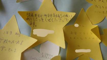 生徒会で取組んだチャレンジ見つけについてたくさん書かれた生徒について紹介がありました。みんなでよいところを認め合うって素晴らしですね。