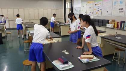 本時の学習課題は「白い粉末の区別をしよう」でした。加熱する、水に溶かす、ヨウ素液に入れる等、自分で考えた方法で粉の正体を確かめました。