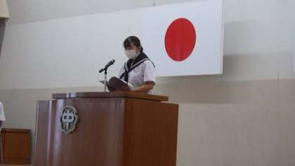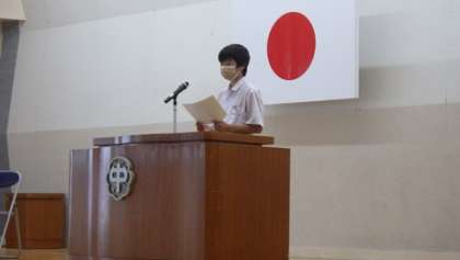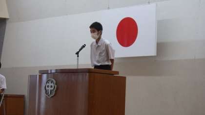 表彰、各学年の代表スピーチ、生徒指導の先生の話、いよいよ明日から夏休みです。