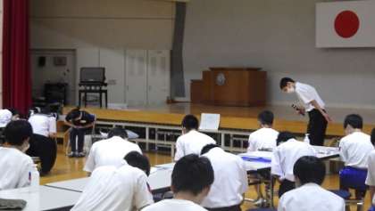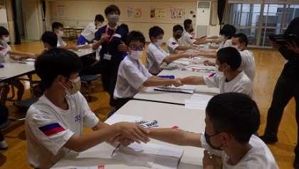 男女に分かれ、指導員の方に丁寧に教えていただきました。教えてもらったことを帰って家の人にやってあげたいという生徒の声が多かったです。楽しみにしていてください!