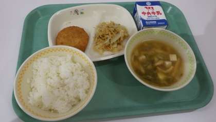 美味しい給食 公開日 2022/09/08 更新日 2022/09/08 お知らせ 本日のメニューは「ごはん、さといもコロッケ、ごまじゃこサラダ、あおさ汁、牛乳」計789kcalでした。とっても美味しかったです。ごちそうさまでした!