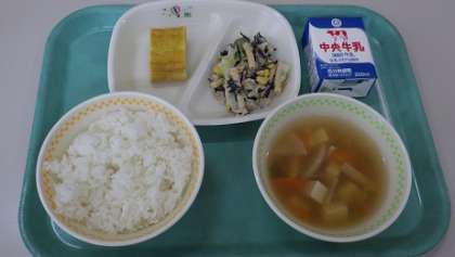 本日のメニューは「ごはん、厚焼き卵、骨太サラダ、五目汁、牛乳」計781kcalでした。とても美味しくいただきました。ごちそうさまでした!