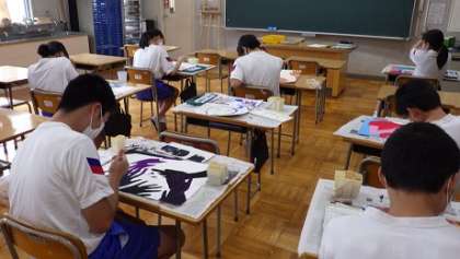 「自画像」を作成しています。それぞれ個性を発揮しています。出来上がりがとても楽しみです。