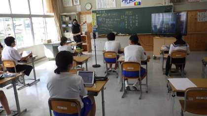 「盆土産」 本時の学習課題は「別の視点から書いてみよう」でした。ICT機器を活用して授業を展開していきました。