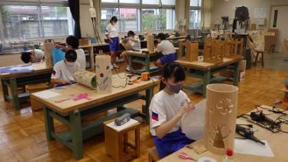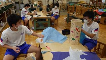 ランプシェードの完成に向けて、紙を貼る作業を行っています。みんな、とても丁寧に作業を進めています。完成が待ち遠しいです。