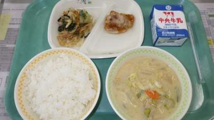 本日のメニューは「ごはん、とり肉のマーマレード焼き、おかかあえ、豆乳入りみそ汁、牛乳」計773kcalでした。とり肉のマーマレード焼きは新メニューだそうです。とっても美味しかったです。ごちそうさまでした!