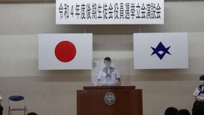 後期の生徒会役員を決める立会演説会。7人が立候補し、自分の思いを堂々と発表しました。