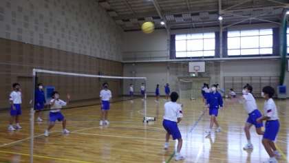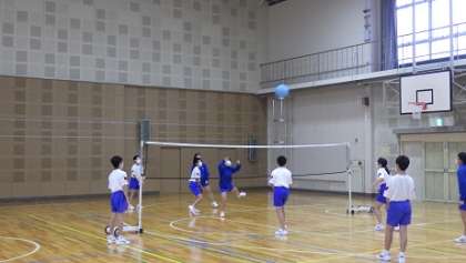 ソフトバレーボールです。何回続くか競いました。声を掛け合い、集中して頑張りました。