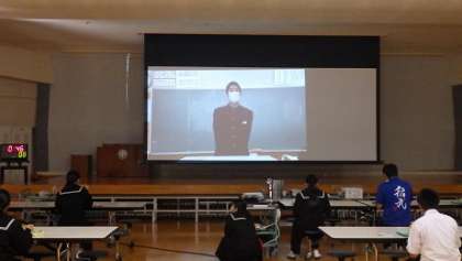 本日のメニューは「ごはん、肉団子、野菜のごまあえ、じゃがいもとツナのうま煮、牛乳」計831kcalでした。前期生徒会役員のお礼メッセージの動画を観ながら美味しくいただきました。ごちそうさまでした!
