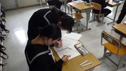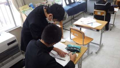 比例について学んでいます。教え合いをしています。