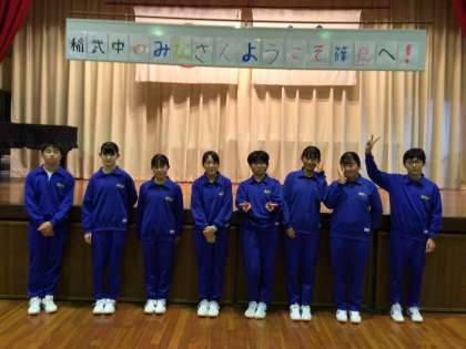 やってきました。篠島中へ。歓迎の看板に、感激!!