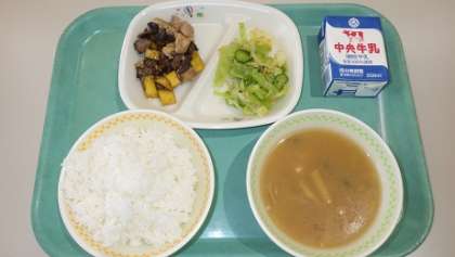 本日の献立は「ごはん、レバーとさつまいもの甘辛煮、たくわんあえ、きのこのみそ汁、牛乳」計802Kcalでした。とっても美味しかったです。ごちそうさまでした!