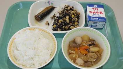 本日の献立は「ごはん、いわしの梅煮、鉄人サラダ、関東煮、牛乳」計863kcalでした。とっても美味しかったです。いつもいつも美味しい給食をどうもありがとうございます!