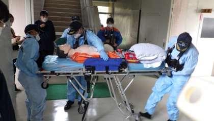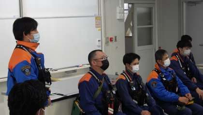 後期中間テスト一日目。午後から先生たちは「いざ」という時のために勉強しました。足助消防署稲武出張所から6名の消防士の方をお招きし、シミュレーション研修を行いました。今回は放課に生徒が階段から転げ落ち、意識を失うという設定で状況把握、救急車要請、保護者への連絡など与えられた役割をしっかり果たせたかどうか消防署の方に見ていただきました。反省点を確認し、「もしも」の場合に備えます。しかしこんなことが起きないことが一番です。生徒の皆さんも安心安全な学校生活を心がけてくださいね。