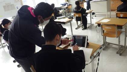 図形と相似の学習です。面積比を求める問題にチャレンジしました。