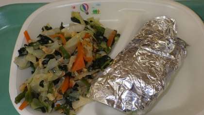 本日の献立は「ごはん、さばの銀紙焼き、くるみあえ、かしわ汁、牛乳」計782kcalでした。さばの銀紙焼きは生徒にとても人気があるメニューです。美味しくいただきました。ごちそうさまでした!