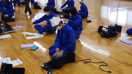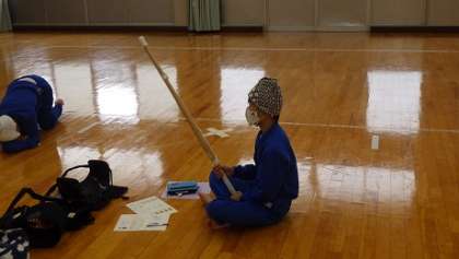 剣道の学習に入りました。防具のつけ方からのスタートです。