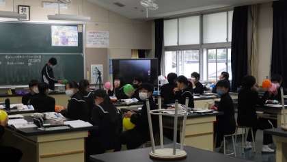 本時の学習課題は「「音がどこから伝えわっていくのか調べよう」でした。風船を使って実際に調べました。