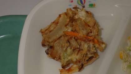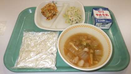 本日の献立は「きつねうどん、しらすのかき揚げ、ささみのごまマヨあえ、牛乳」計808kcalでした。いつもいつも美味しい給食を本当にありがとうございます。ごちそうさまでした!!