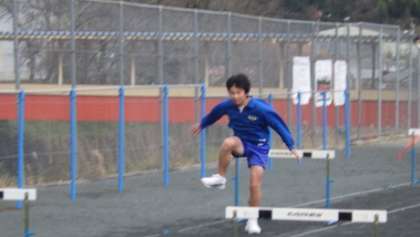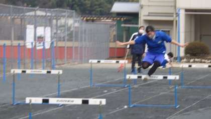 ハードル走 計測しました。ハードル間の走りのスピードが徐々に上がってきました。タブレットを活用して、友達に自分の走り、ハードリングを記録してもらい、フォームや中間走をチェックしました。寒い中、よく頑張りました。