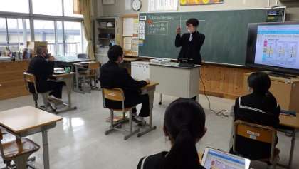 単元「市場経済の仕組みと金融」の学習です。本時の学習課題は「消費者と生産の立場から円安、円高の影響を考えよう」でした。