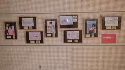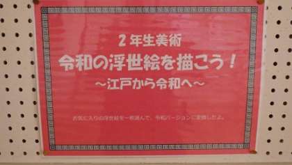 単元「令和の浮世絵を描こう!−江戸から令和へ−」の作品が多目的ホールに飾ってあります。とてもユニークな作品ばかりです。2月9日(木)学校公開日です。ぜひ作品を観ていただきたいです!