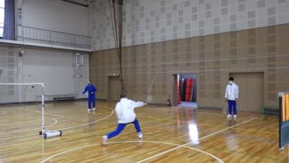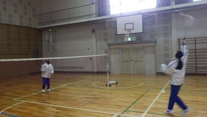バドミントンです。とても冷えている体育館。しっかりウォーミングアップしています。