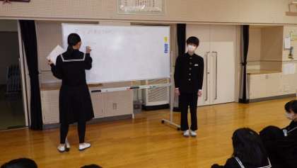 本日のテーマは「最近見たアニメ」「氷瀑」「わたしの至福の時間」でした。今回から1、2年生でのスピーチとなりましたが、これまで3年生がいかにリードしてくれていたかを実感しました。