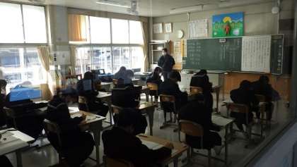 2時間目 1年 国語 2年 数学 3年 社会 です。1年間のまとめのテストです。がんばれ!稲中生!!