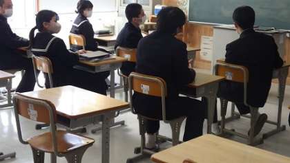 世界遺産についての学習の続きです。本時も授業初めのアイスブレイキングで"What did you do last weekend?"と質問され、週末どんなことをして過ごしたか英語で教師と笑顔で話す3年生のたくましい姿がとても印象に残りました。