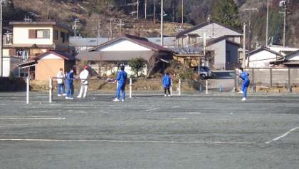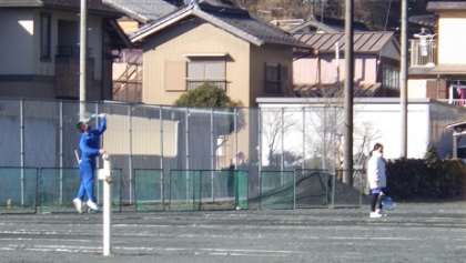 ソフトテニスです。今朝は気温がー4度でしたが、日が当たるとぐんぐん暖かくなります。