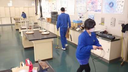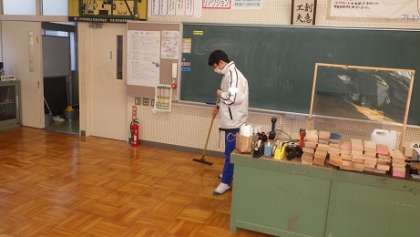 総合教室、理科室、技術室等、お世話になった教室にお礼の気持ちを込めて掃除する3年生。ありがとう!