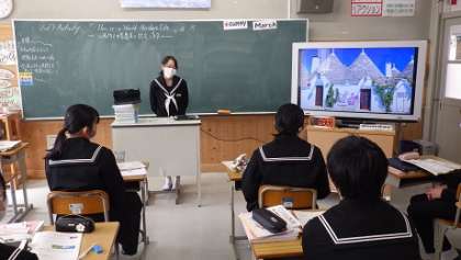 世界遺産について発表の時間でした。行ってみたい世界遺産の写真を元に英語で説明しました。Where do you want to go?