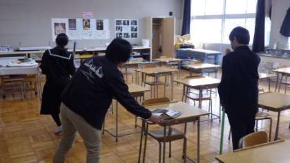 人数は少なくても、一人一人責任をもって与えられた所を一生懸命に掃除・・・新館に掲げられているように「本を読めば未来が輝く 掃除をすれば学校が輝く」そのとおりですね。