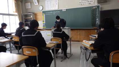 「大正デモクラシー」について学びました。デモクラシーとは?教科書を読み取り適切に答えていました。