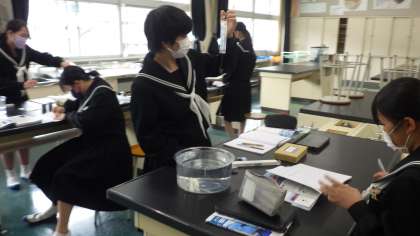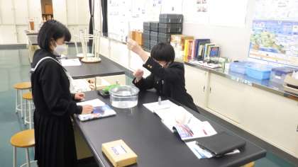 「浮力は何と関係があるのかな」質量?深さ?体積?予想して実験を行いました。