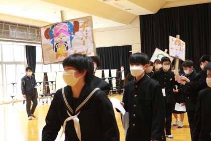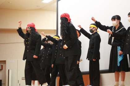21日(金)に2年生が企画した新入生歓迎が行われました。グループに分かれてパズルを見つけそこに書かれている言葉を完成するという企画です。アニメ「ワンピース」に扮し歓迎会を楽しいものにしました。