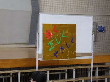 完成した言葉は、校訓の「強く、正しく、やさしく」です。