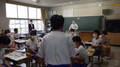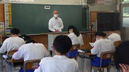 2年生は6月に三日間職場体験を行います。今日は、農業試験所の所長さんに来校していただき働くことについて講和をしていただきました。