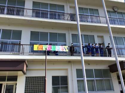 1年生が作ってくれたてるてる坊主はバスに飾らせてもらいました。