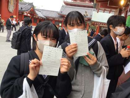浅草の仲見世ではお土産を買ったりおみくじや犬くじを引いたり、思い思いに楽しみました。