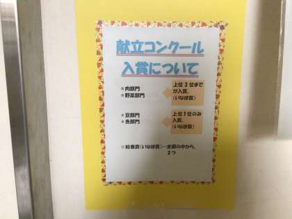 各家庭で我が家の自慢献立とアイデア献立を調理し発表しています。この中から食べてみたいなと思うものを各部門から職員 生徒の投票で上位を選出します。給食賞は献立になる予定です
