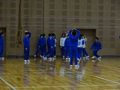 委員会主催の朝の体力づくりです。バナナオニを行いました。