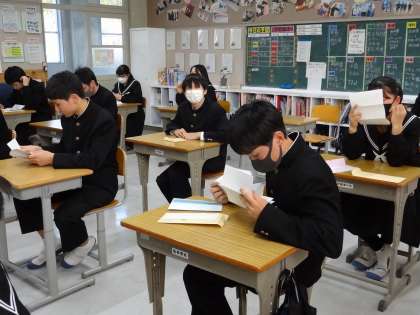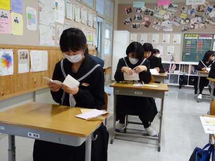 ・・・教室でおうちの方からの手紙を読んでます・・
