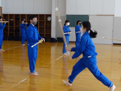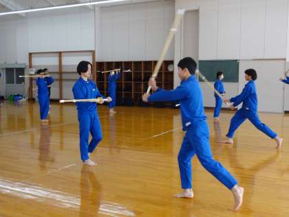 「剣道」毎年駐在の浅井さんに来ていただき剣道の基本を教えていただいています。何度もお休みの日に来ていただき大変ありがとうございました。